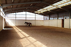 Die kleine Reithalle dient in erster Linie zum Longieren, Laufen lassen und Freispringen